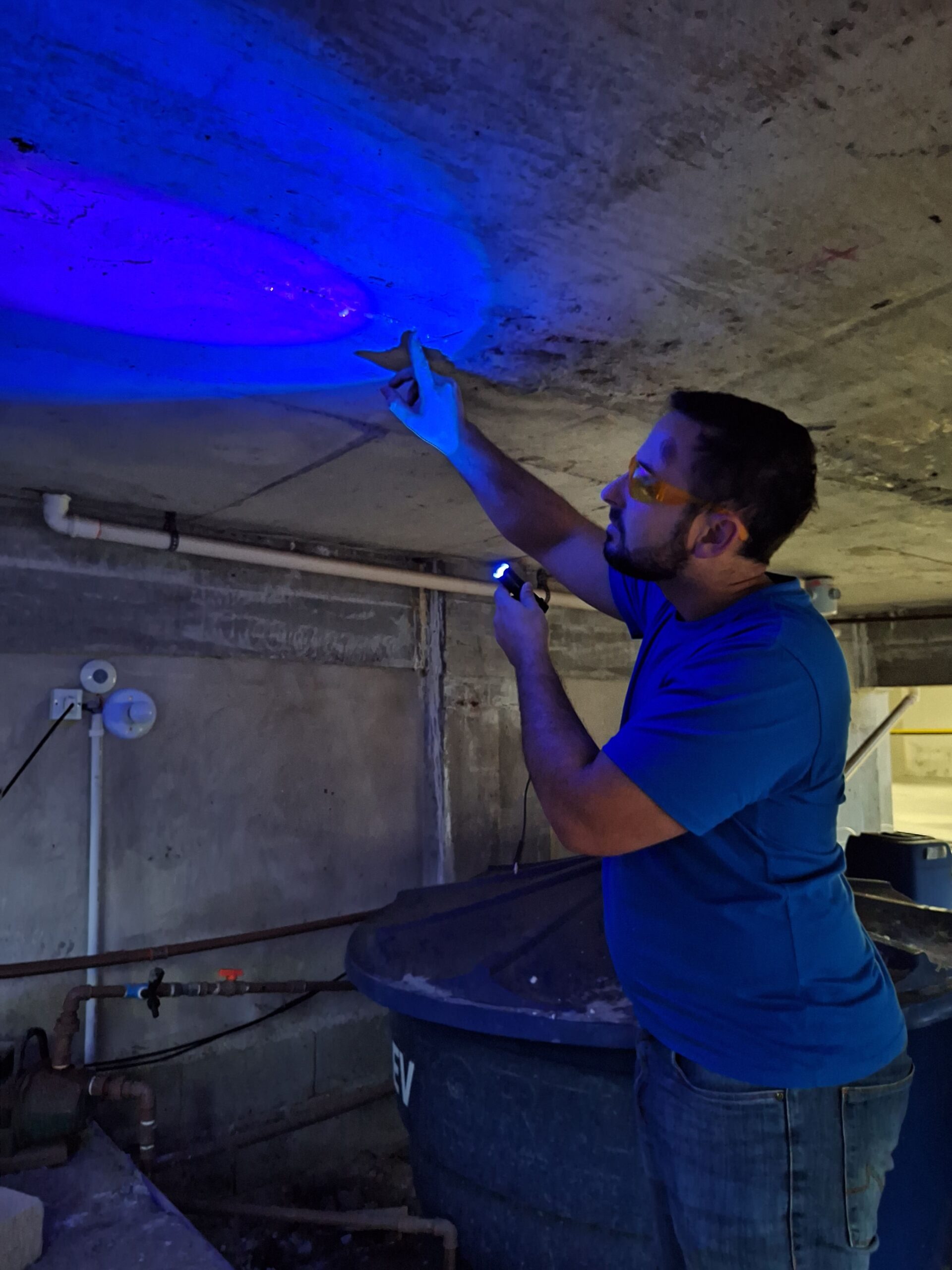 Aplicamos o traçador químico nos pontos suspeitos de infiltração, detectando vazamentos com precisão e eficiência.